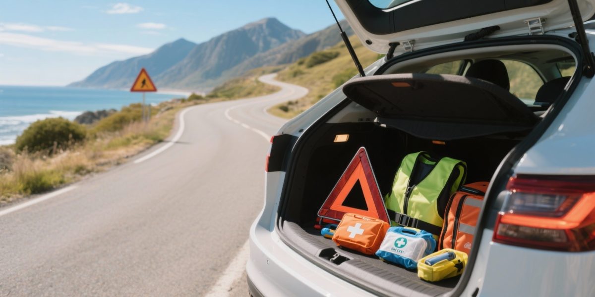Voor een zorgeloze roadtrip, zelfs als het niet verplicht is, zijn een krik, sleepkabel en EHBO-kit sterk aan te raden. Een reddingsdeken, ducttape voor snelle reparaties en werkhandschoenen zijn ook nuttig. Vergeet bovendien niet om een Europees schadeformulier mee te nemen en je reisverzekeringsnummer paraat te hebben.