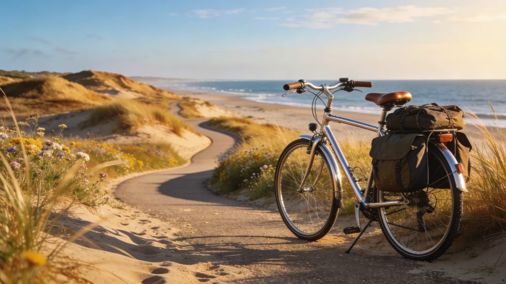 Je kunt het beste kiezen voor een hybride of toerfiets, vooral voor zandige duinpaden en lichte hellingen. De routes zijn grotendeels vlak, maar de wind kan voor weerstand zorgen. Neem een winddicht jack mee, want het weer kan snel veranderen.