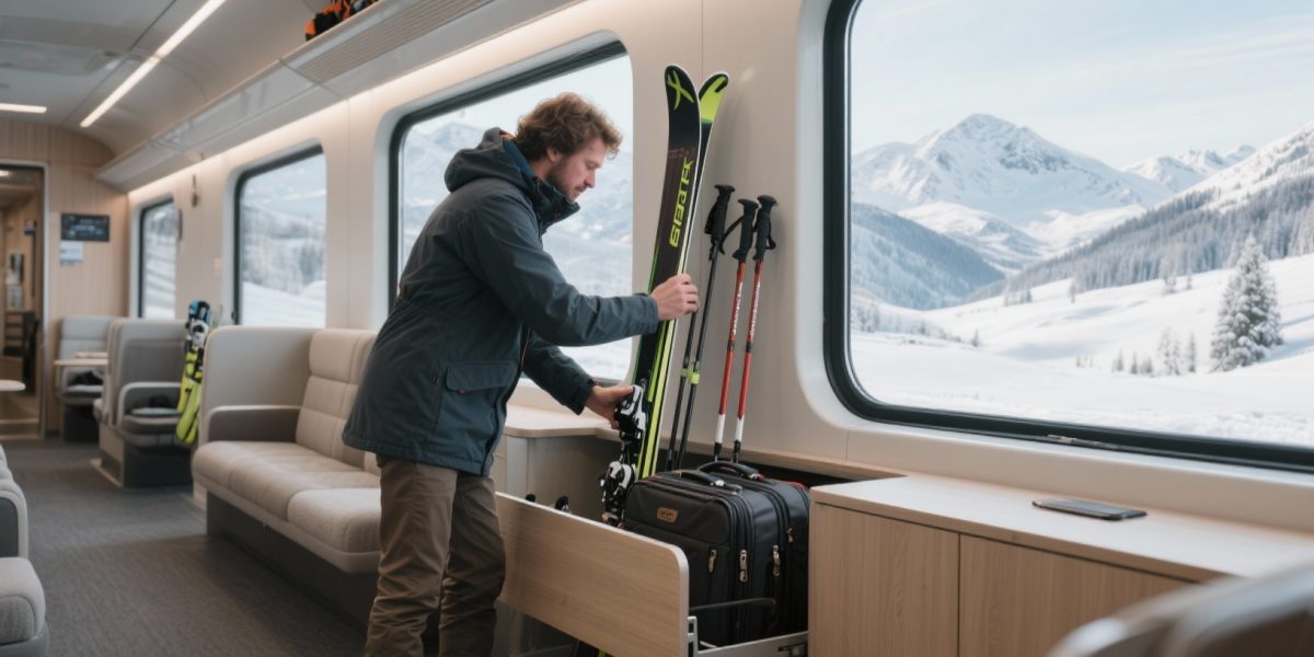 Voor de meeste wintersporttreinen hoef je ski-transport niet vooraf te reserveren, en er zijn meestal geen extra kosten aan verbonden. Ski’s en snowboards zijn toegestaan mits goed verpakt in een doos of hoes, en passen in rekken of speciale ruimtes. Zorg ervoor dat de bagage gangpaden niet blokkeert. Kies voor directe verbindingen om overstappen met veel bagage te minimaliseren.